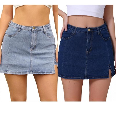 Allegra K Women's Button Down Two Pockets Split Hem Casual Jean Demin Skirt
