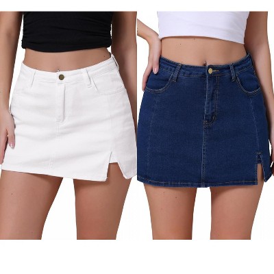 INSPIRE CHIC Women's Casual High Waist Back Slit Short Denim Skirts