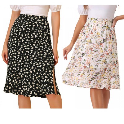 Women’s skirts are making a comeback this season. From casual mini skirts & denim midi skirts to floral maxi skirts, there are a ton of styles to choose from. Check out Target.com to explore the most exciting skirt trends for creating dreamy & romantic looks many of us are craving this summer. Whether you’re looking for a women’s mini skater skirt or a knee-length, tie-dye midi skirt, we got you covered. Switch out the shorts & jeggings with stylish denim skirts to bring a fresh vibe to your spring-summer style for 2021. High-waisted mini skirts can be your go-to for hangouts or errands, while a flounced maxi skirt makes the perfect choice for a beach picnic or wedding date. A mid-length, pleated skirt is a must-have in your wardrobe for creating glam & on-trend looks. Pair a pleated midi or pencil skirt with a button-down shirt for a look that’s playful, yet perfect for formal meetings or sit-down dinners. Wondering what’s the chicest way to style a skirt this season? As part of a suit, or a matching set, of course! Put together a cute & charming outfit in minutes by pairing a floral maxi wrap skirt with a coordinating blouse.