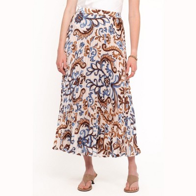 Women’s skirts are making a comeback this season. From casual mini skirts & denim midi skirts to floral maxi skirts, there are a ton of styles to choose from. Check out Target.com to explore the most exciting skirt trends for creating dreamy & romantic looks many of us are craving this summer. Whether you’re looking for a women’s mini skater skirt or a knee-length, tie-dye midi skirt, we got you covered. Switch out the shorts & jeggings with stylish denim skirts to bring a fresh vibe to your spring-summer style for 2021. High-waisted mini skirts can be your go-to for hangouts or errands, while a flounced maxi skirt makes the perfect choice for a beach picnic or wedding date. A mid-length, pleated skirt is a must-have in your wardrobe for creating glam & on-trend looks. Pair a pleated midi or pencil skirt with a button-down shirt for a look that’s playful, yet perfect for formal meetings or sit-down dinners. Wondering what’s the chicest way to style a skirt this season? As part of a suit, or a matching set, of course! Put together a cute & charming outfit in minutes by pairing a floral maxi wrap skirt with a coordinating blouse.