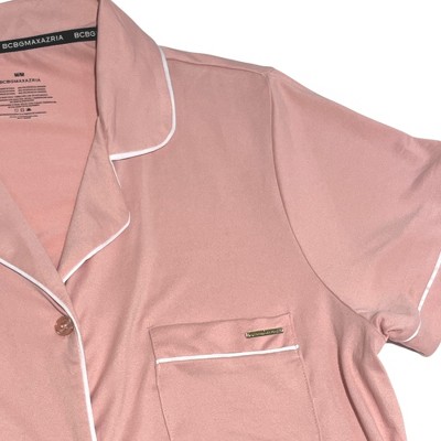 BCBGMAXAZRIA Women's Pajama Set Short Sleeve Notch Collar with Pants