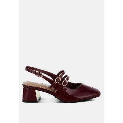 Berness Women's Jennifer Patent Slingback Kitten Heels with Geometric Embellishment