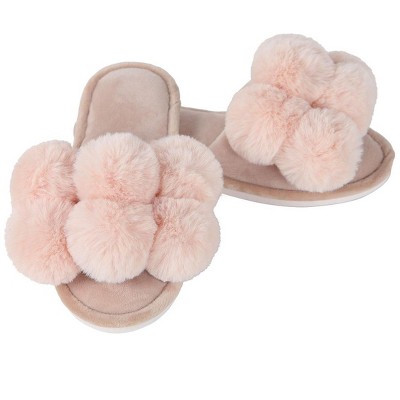 Memoi Women's Fuzzy Wuzzy Pom Pom Slippers