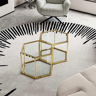 Hrinhom 39.3"W 2-Layer Transparent Tempered Glass Coffee Table,All-Glass