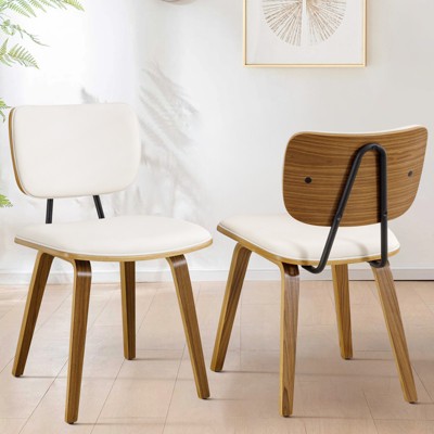 Bekrvio Set of 2/4 Mid Century Modern Dining Chairs with Wood legs, Padded Back, Faux Leather Kitchen Chairs