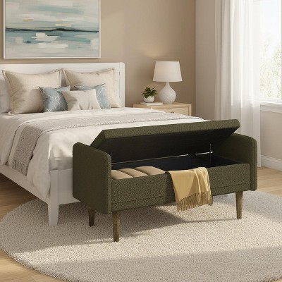 Homy Casa Teddy Velvet Upholstered Storage Bench with Side Arms