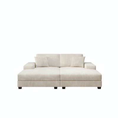 TiramisuBest 74" High Resilience Three-Seater Sofa,Orange Corduroy Upholstered