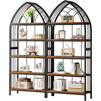 GustoWave 5 Tier Farmhouse Bookcase w/Display Rack & Fluted Design