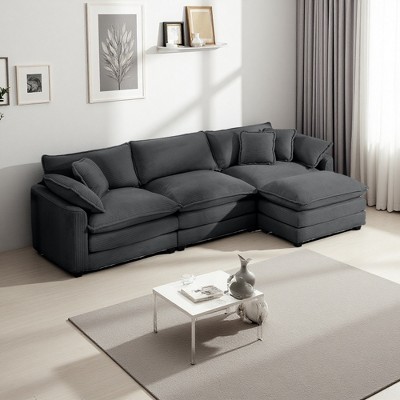 Oversized L-Shaped Corduroy Modular Sofa with Ottoman