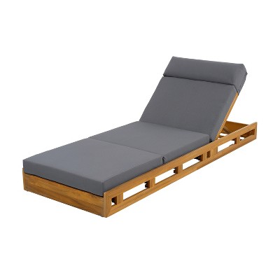 Gulches Acacia Solid Wood Lounge Chaise Set, 4-Position Adjustable, 4" Triple-Fold Water-Resistant Dark Grey Cushion, Outdoor for Patio Poolside