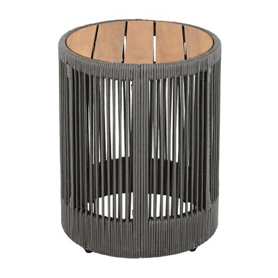 NAYSAYE Patio Accent Table Set Outdoor Rattan Rope Acacia Wood Side Table for Garden, Gray and Teak, 15"*15"*18.25"