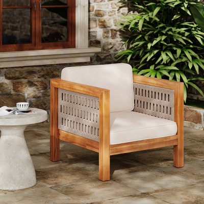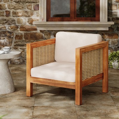 Oana Outdoor Club Chair, Accent Chair with Acacia Wood Frame-- Frevyn