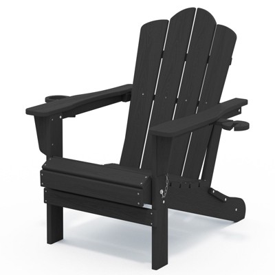 HYLEORY HDPE Folding Adirondack Chair with 2 Cup Holder - Composite Adirondack Chair