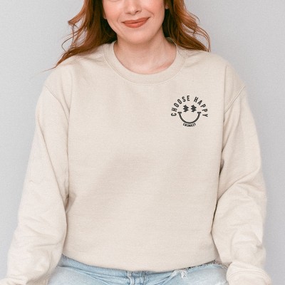 S.W.Smiley Embroidered Choose Happy Lightning Face - Women's Graphic Sweatshirt