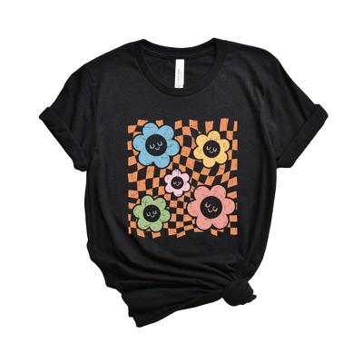 Simply Sage Market S.W.Smiley Checkered Flowers And Smiley Short Sleeve Tee