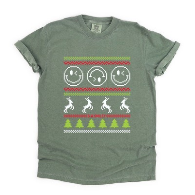 S.W.Smiley Ugly Christmas Sweater Pixels - Women's Garment Dyed Graphic T-Shirt
