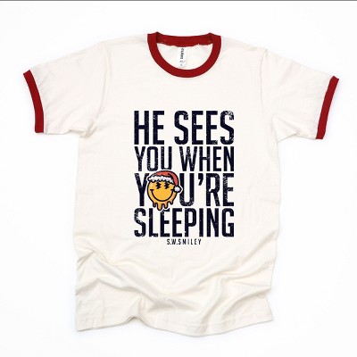 S.W.Smiley He Sees You When You're Sleeping - Women's Ringer Graphic T-Shirt