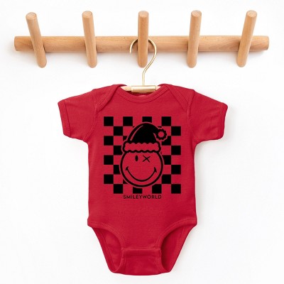 SmileyWorld Checkered Christmas Wink - Baby Short Sleeve Graphic Bodysuit