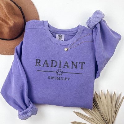 Simply Sage Market S.W.Smiley Embroidered Radiant Smiley Outline Garment Dyed Sweatshirt