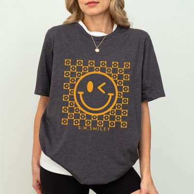 Simply Sage Market S.W.Smiley Checkered Flowers And Smiley Short Sleeve Tee