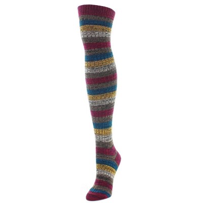 Memoi Women's Sheer Multicolor Striped Cuff Crew Socks