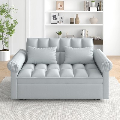 54" Velvet Sofa Bed with Armrest Storage & Retractable Queen Bed