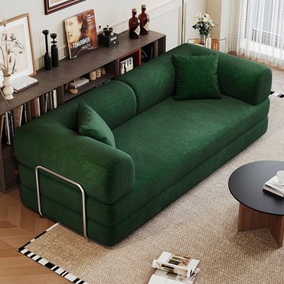 78" Plush Corduroy Floor Sofa Bed with Foam Support, Convertible, No Assembly
