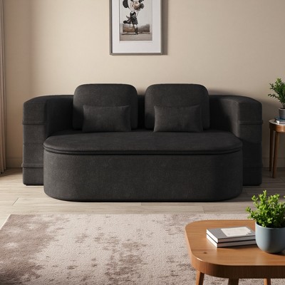 75" 2-in-1 Chenille Sofa Bed with Pillows