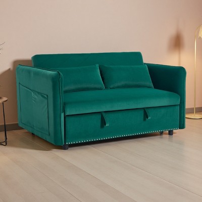 55" Velvet 3-in-1 Convertible Loveseat Sofa Bed with Storage & Pillows