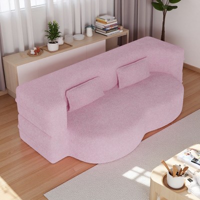 78" Teddy Fabric Floor Sofa Bed with 2 Pillows & Plush Foam Mattress