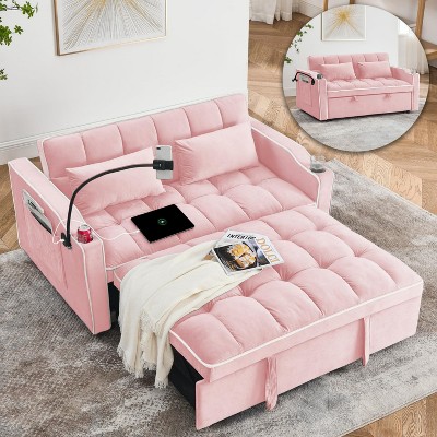 Whisen 3-in-1 Queen Velvet Sleeper Pull Out Sofa Bed, Convertible Loveseat Sofa Couch
