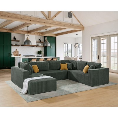 137" Modular Cloud Sectional Couch - Deep seat boneless design with ottomans, no assembly required for living room.
