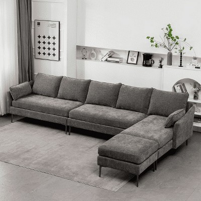 Convertible Sectional Sofa, L-Shaped Chenille Sofa Couch with Hidden Storage