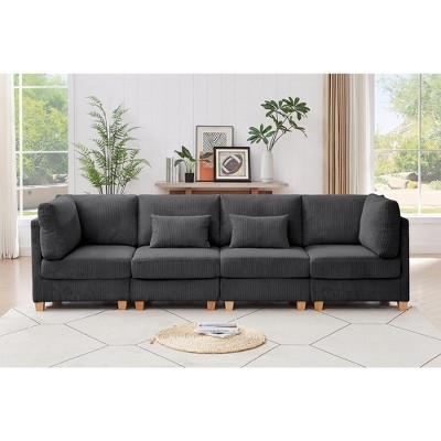 112'' Oversized L-Shaped Sofa, Modular Sectional Sofa, Comfy Deep Seat Convertible 3 Seater Couch