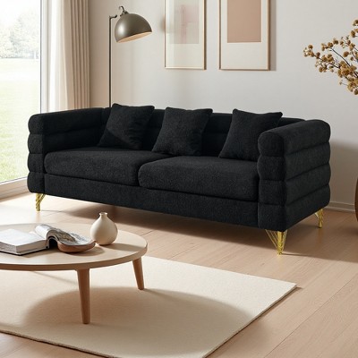 90" Upholstered Contemporary 3-Seater Sofa with Deep Channel Stitching