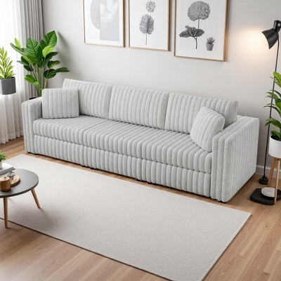 Modular 3-Seater Boneless Corduroy Sofa with Cloud Sectional & Throw Pillows