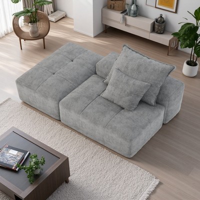 Oversized Chenille Modular Sectional Sofa with Tufted Design