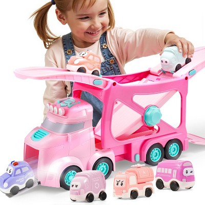 Joyfy Toy Truck for Kids, Racing Car with Lights Sounds, Foldable Track Carrier Truck Toy, Birthday Christmas Gift for Boys Girls 2 3 4 5 Years Old