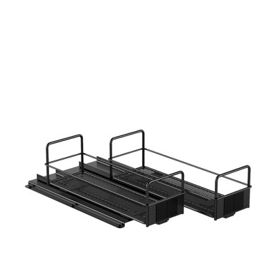2-Pack Kitchen Cabinet Shelf Racks, Expandable Spice Rack for Pantry & Cupboard Storage, Black & Natural