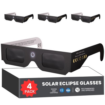 Solar Eclipse Glasses Approved 2024 (4 Pack) CE and ISO Certified Solar Eclipse Observation Glasses Safe Shades