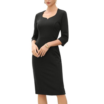 INSPIRE CHIC Women's 3/4 Sleeve Sweet Heart Neck High Waist Office Midi Dress