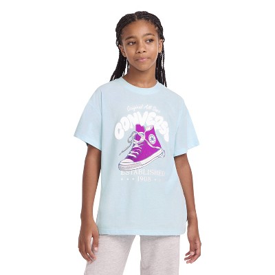 Converse® Girls' Short Sleeve Front and Back Graphic T-Shirt - Light Blue XL