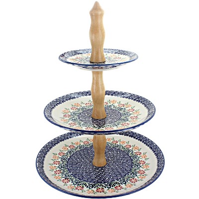 Blue Rose Polish Pottery P114 Manufaktura 3 Tier Dessert Stand