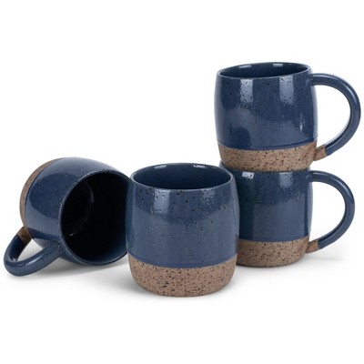 Elanze Designs Speckled Raw Bottom 17 ounce Ceramic Mugs Pack of 4, Navy Blue
