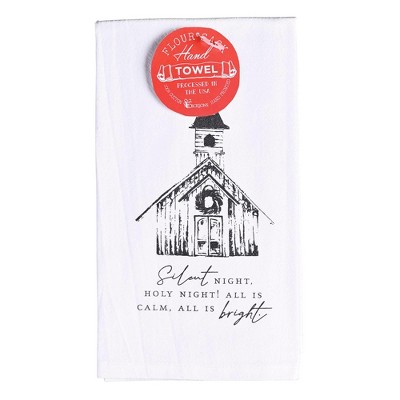 Dicksons Flour Sack Country Church - Silent Night Holy Night - 22x 18 Inch White Cotton Kitchen Dish Towel