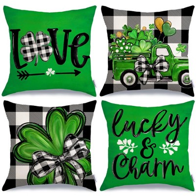 Waterproof St. Patrick's Day Pillow Covers 18 x 18 Inch Set of 4, Green Love Lucky Charm Buffalo Plaid Truck