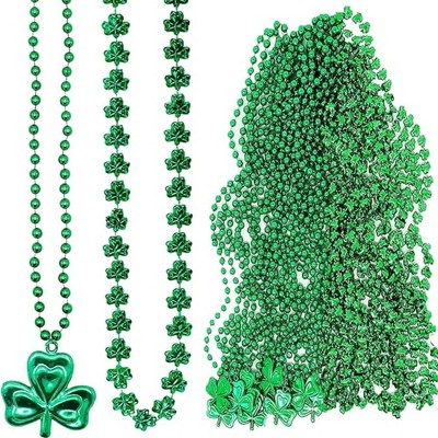 4E's Novelty St. Patrick's Day Beads Necklace 24 Pack - 33" Green Shamrock Necklaces for Kids & Adults, Perfect Party Favors and Outfit Accessories