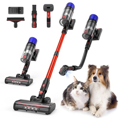 Teendow 500W Cordless Stick Vacuum Cleaner with Hose, Max Suction 31000Pa,Up to 55 Mins, for Carpet/HardFloor, Brushless Motor, Rich Accessory,Red