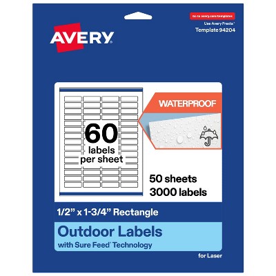 Avery Outdoor Waterproof Labels, 0.5" x 1.75" Rectangle