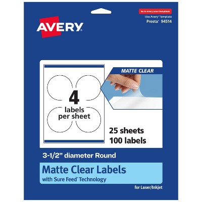 Avery Matte Clear Labels,  3" x 3" Square